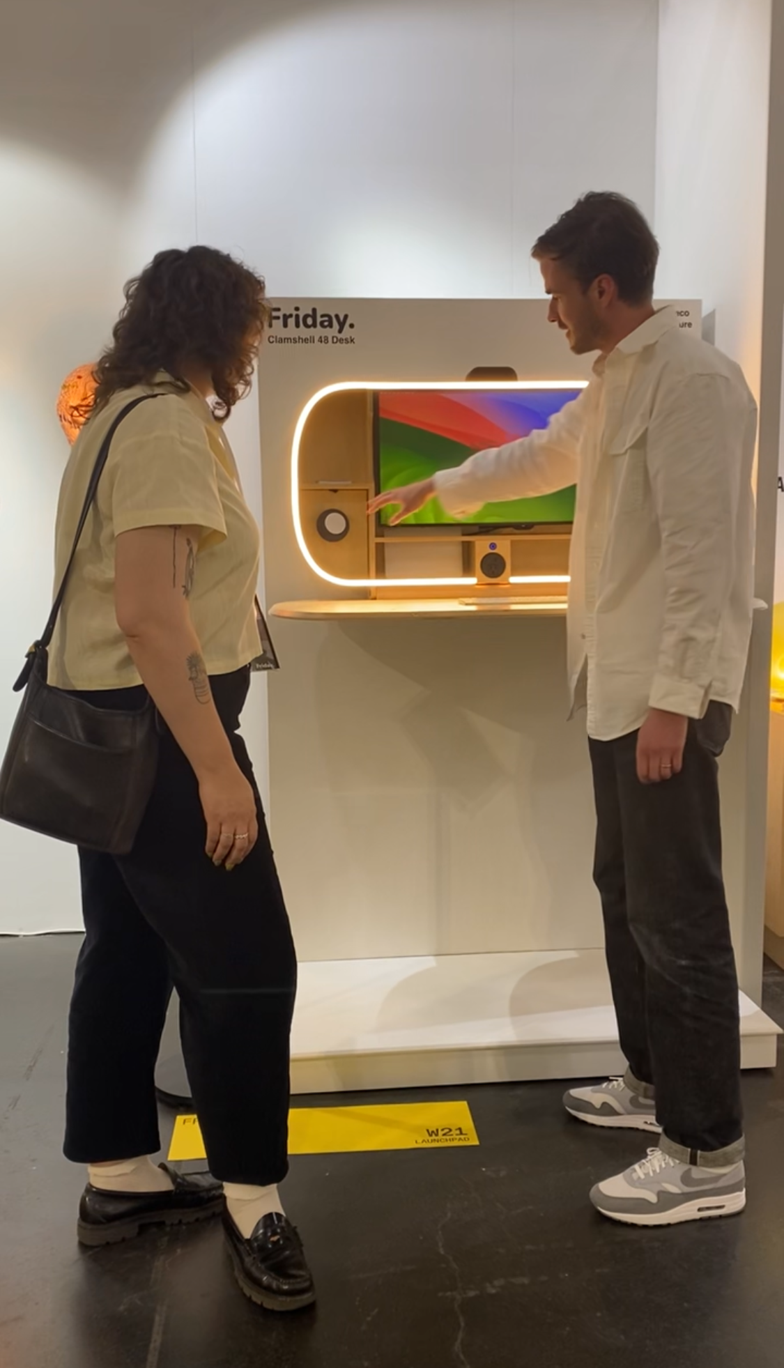 Introducing the Clamshell wall-mounted folding desk by Friday. Everything you could possibly want in your home office, efficiently folds away to just 7" deep.